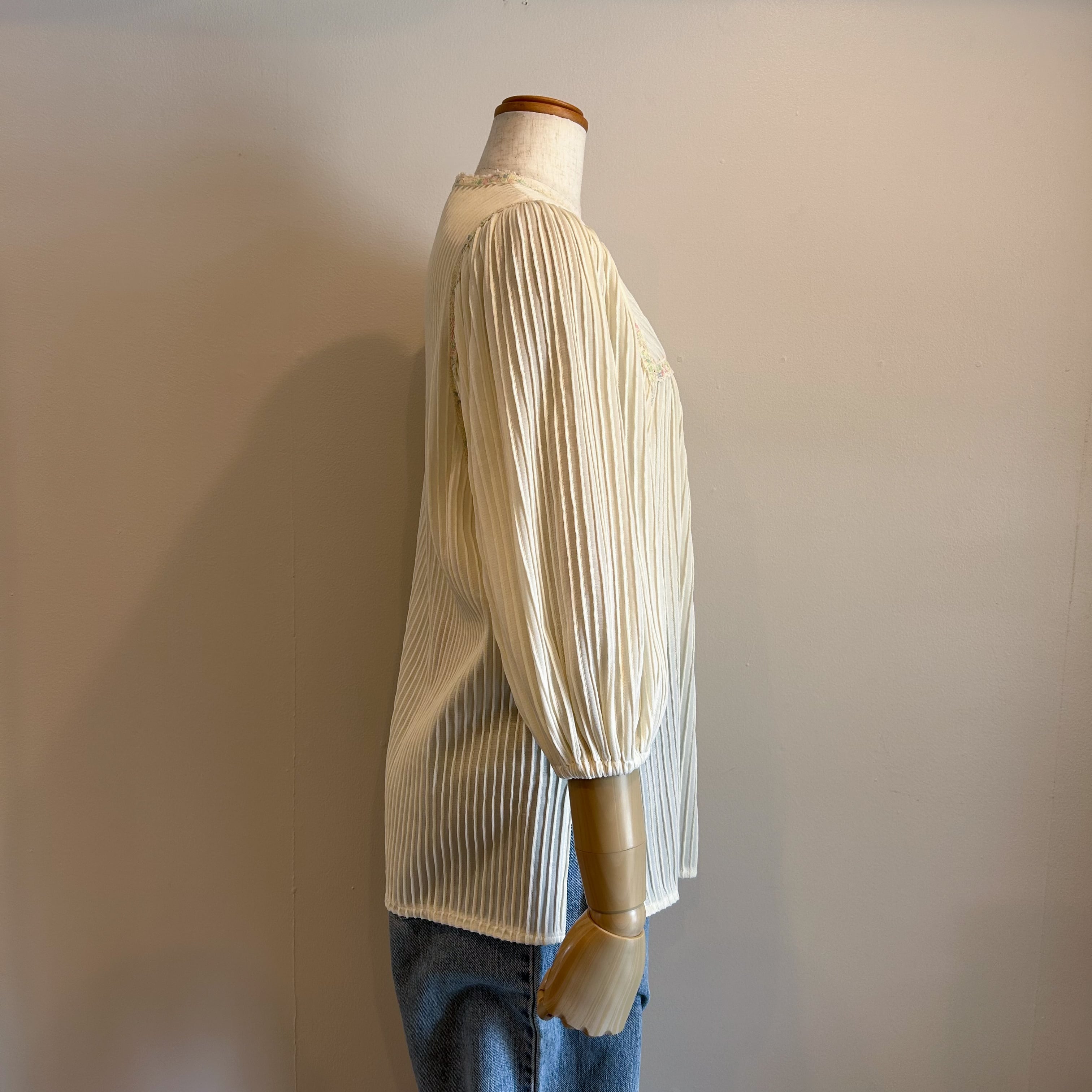 若干透け感のあるポリエステルの生地にピンタックがほどこされています。